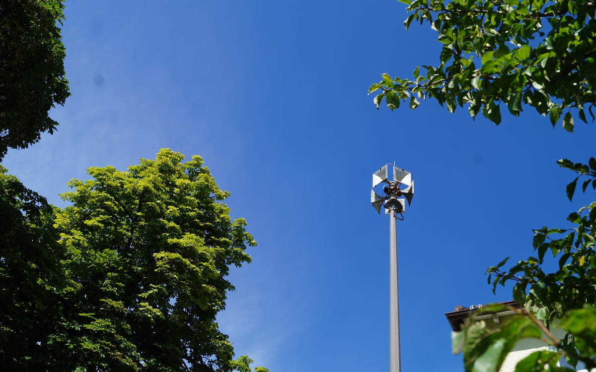 Als stumme Zeugen des Kalten Krieges stehen die sogenannten Hochleistungssirenen teils mitten in der Landschaft. Da diese Bauform gegenüber den bekannteren "Pilzsirenen" eine höhere Reichweite und Netzunabhängigkeit bot, wurden diese Anlagen bis in die 80er Jahre in Westdeutschland ca. 500 mal aufgebaut. Das Prinzip der Hochleistungssirene ähnelt dem der Motorsirene, nur wird hier Druckluft genutzt. In einem unterirdischen Bunker befindet sich ein Dieselmotor mit Kompressoraggregat, Drucklufttank und weitere Technik. Nach Entspannung der politischen Lage, in den 90er Jahren, wurden die meisten Sirenen abgebaut. Aber nicht alle - ein paar Sirenen findet man noch heute. Empfehlenswert ist dazu auch die Seite: hochleistungssirene.de.