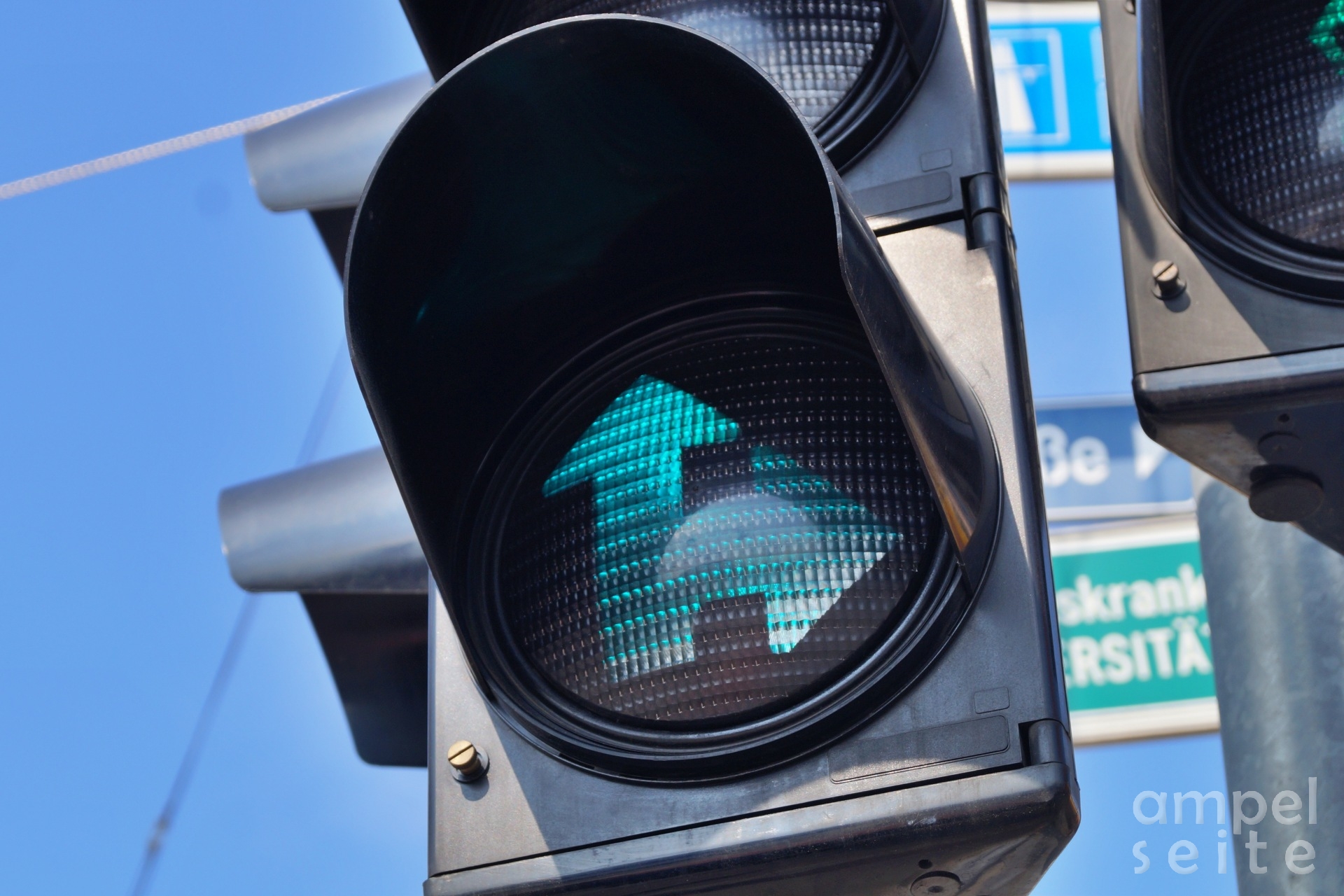 Neben dem eigenen Ampelmännlein "Heiner", ist das "S" eine der örtlichen Eigenheiten. Es leuchtet durchgehend und blinkt sobald sich ein Bus oder Straßenbahn sich an der Anlage anmeldet, wie man es sonst andernorts mit einem "A" realisiert.